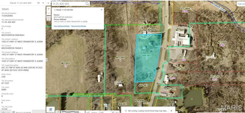 Rare Opportunity: 3-Acre Homestead on Highway 37Discover the perfect blend of space and accessibility with this unique single-family property in West Frankfort. Situated on a sprawling 2.95-acre lot, this home offers the kind of acreage rarely found so close to city conveniences.Property Highlights:Expansive Land: Nearly 3 acres of level ground provides endless possibilities-from gardening and hobby farming to building your dream workshop or outdoor entertaining oasis.Prime Location: Conveniently located on State Highway 37, you'll enjoy easy highway access and a short commute to local amenities, including the West Frankfort Plaza and West Frankfort House Furnishing.Quiet Living: Despite its highway location, the area is noted for low noise levels, offering a peaceful, sparse suburban feel.Whether you are looking for a primary residence with room to grow or a savvy investment opportunity in a buyer's market, 1433 State Highway 37 is a canvas waiting for your vision.
